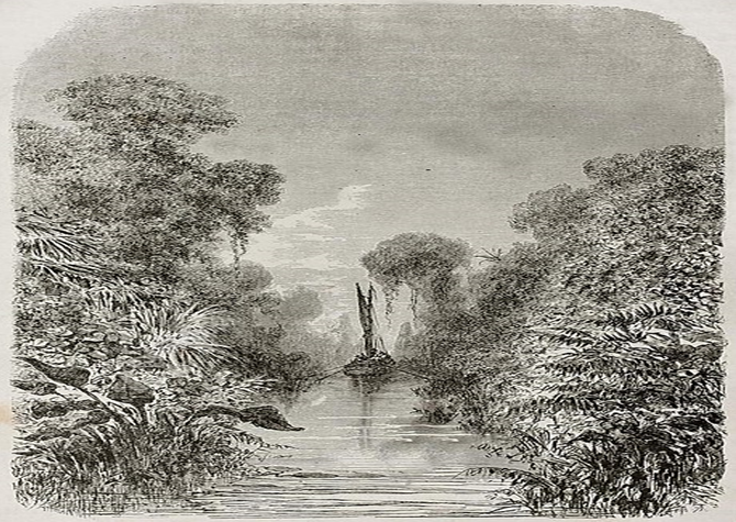 Velha visão da vegetação do Canal de Igarape-Miri. por Edouard Riou, 1867